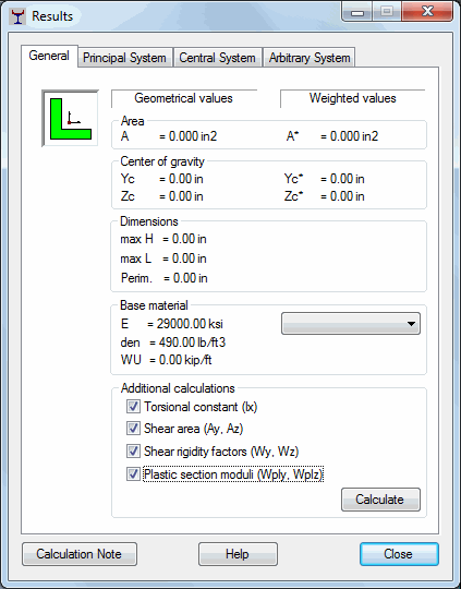 This option begins the calculation of geometric properties of the defined solid section.