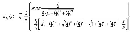 Solutions to the above equations for corner points of the rectangular area, under the center of the rectangular area as well as for an average value under the rectangular area, are given in the literature. To obtain a value of the average stresses under the rectangular area use the following formula. After integration, it assumes the form applied in the calculation algorithm.