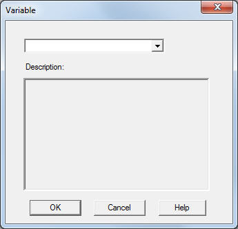 The Variable (Function, Method) dialog box presented below allows you to select the variables (functions, methods) to be used in a plotter drawing. The dialog box may be opened by pressing the Variable (Function, Method) button in the Text properties dialog box.
