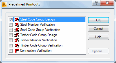 Select the name of the calculation note and click Options to open a new dialog for selecting the part of the calculation note for printing.