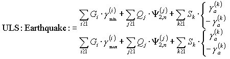 The ULS:Earthquake formula consists of the parts concerned with dead, live and seismic loads (for accidental loads, 0 has been entered to disregard in this combination). Taking advantage of the list of predefined components or descriptions in the regulations, the following is obtained.