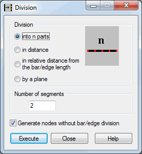 - Execute - when selected, Robot divides the bar/edge according to the parameters specified in the Division dialog.