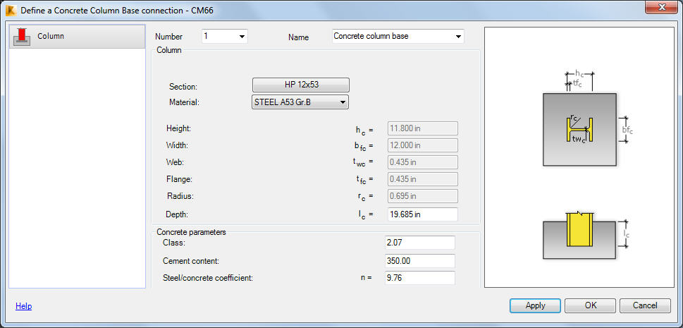 另外,还可指定柱墩穿透柱基的深度 l c;该值定义为从基础的顶部边缘到柱基板的顶部边缘的距离。