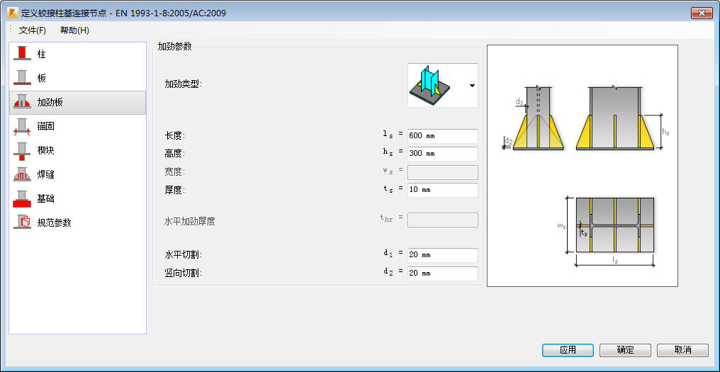 通过从加劲板类型选择列表中选择相应的图标,可以指定加劲底板的方法。