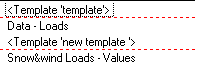 Ascribes page templates saved in the Page Set-up dialog to successive printout elements. After selecting a template name in the context menu, it is put before printout elements that are to be printed. In the following example, the load data will be printed using the 'template' template, while values of snow/wind loads on a template called 'new template'. ![]() By default, there is a nameless printout template. This template should be applied if user templates have not been defined. |