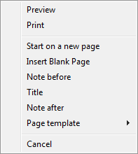 Adds a blank page before a selected (highlighted) object contained in the right-hand panel to a composed printout. |