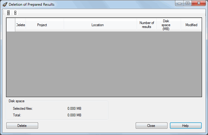 - Information concerning the disk space impact of the results (selected results and all results).