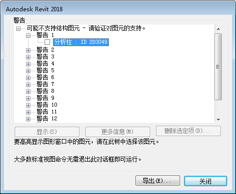 未受支撑图元的警告