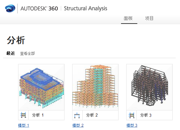 Autodesk® 360 Structural Analysis 网站包含以下选项卡。