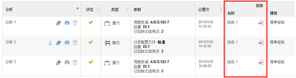 Autodesk® 360 Structural Analysis 网站可以用预定义分析报告的形式提供结果。 您可以采用 HTML 和 PDF 格式查看, 也可以将它们下载并保存到本地。