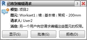 在处理工作共享的项目时,为有效进行沟通,当提出、授权及拒绝借用图元的请求时,各团队成员会收到自动发出的通知消息。