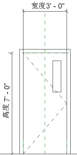 在本例中,窗约束到门的中心线和门嵌板的右侧,而后两者均由参照平面表示。窗的位置相对于这些参照平面而固定。