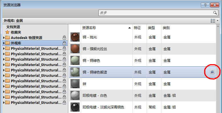 可以从“资源浏览器”中选择并替换现有的资源。 材料将采用具有新资源的属性。