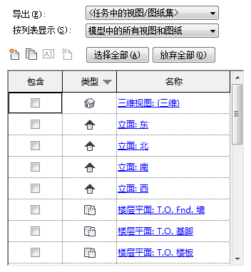 将模型导出为多种格式时,使用“导出”对话框上的工具来选择要包含的视图和图纸。保存选定的集以供以后重复使用。