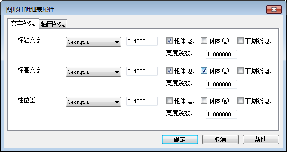 可调整“图形柱明细表”中的文字格式。 在“属性”选项板的“文字”部分下,单击“文字外观编辑”按钮。