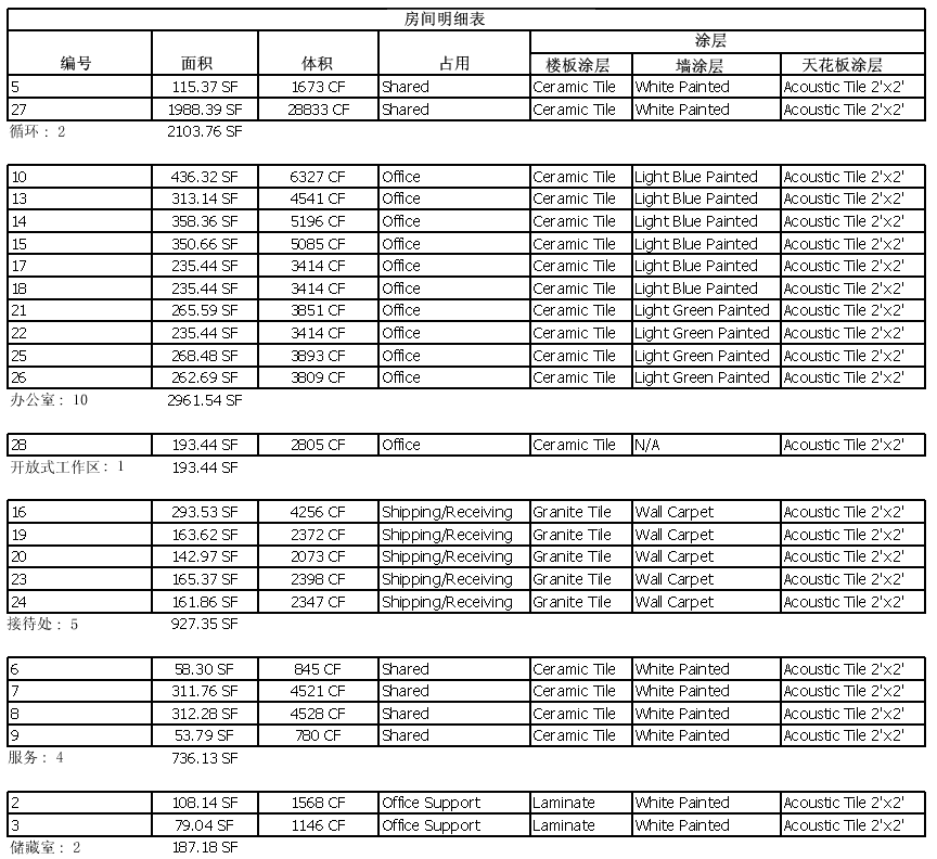 修改项目时,所有明细表都会自动更新。 例如,如果移动一面墙,则房间明细表中的平方英尺也会相应更新。