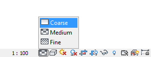 要指定视图的详细程度,请在绘图区域底部的视图控制栏上单击“详细程度”按钮,并选择所需的详细程度:粗略、中等或精细。