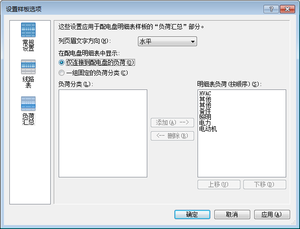可以自定义配电盘明细表的外观。 可以指定常规外观的设置,以及线路信息和负荷汇总。
