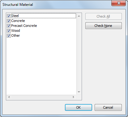 选择要显示的每种材质,并单击“确定”。 默认情况下这些材质都被选中。