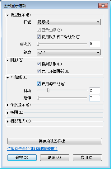 该视图使用以下位于“图形显示选项”对话框上的设置: