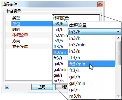 7. 在“单位”行中,选择“ft3/min”。