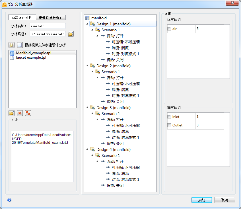 输入设计名"设计 2",然后为配置选择"歧管-02"。