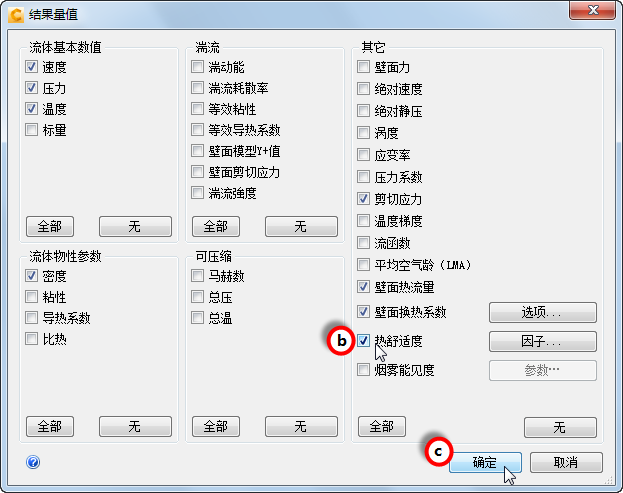 - b. 在“结果量值”对话框中,选中“热舒适度”。