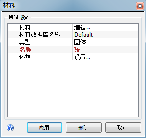 在“材料”快速编辑对话框中,应用以下设置:类型 = 固体。