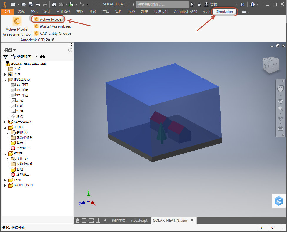 例如,如果您要从 Autodesk® Inventor 中启动,请单击“模拟”和“活动模型”: