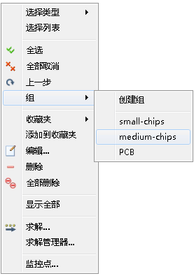 在“图形”窗口中,单击右键,然后单击“组”。选择“中型芯片”组。