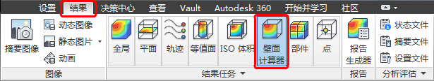若要评估壁面上的作用力,请单击“结果”选项卡中的“壁面计算器”: