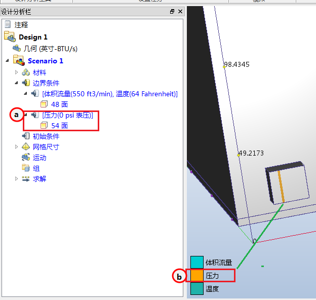 6. 若要验证边界条件是否已正确应用到返回管,请查看设计分析栏和返回面上的彩色条纹: