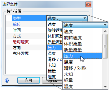 3. 在“类型”行中,选择“压力”。