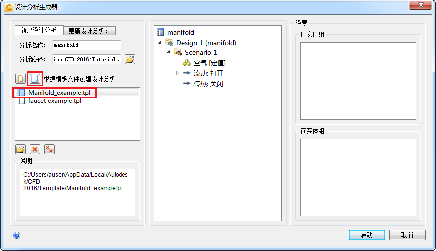 单击“从模板中创建”图标,然后选择 Manifold_example.tpl。