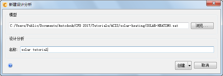 在“文件管理器”对话框中,导航到 Users\Public\Public Documents\Autodesk\CFD 2018\Tutorials\<文件类型>\solar-heating。