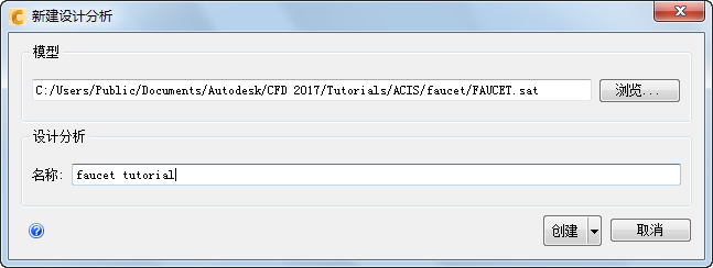 在“文件管理器”对话框中,导航到 Users\Public\Public Documents\Autodesk\CFD 2018\Tutorials\<文件类型>\faucet。