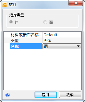在“材料”快速编辑对话框中,应用以下设置:类型 = 固体。