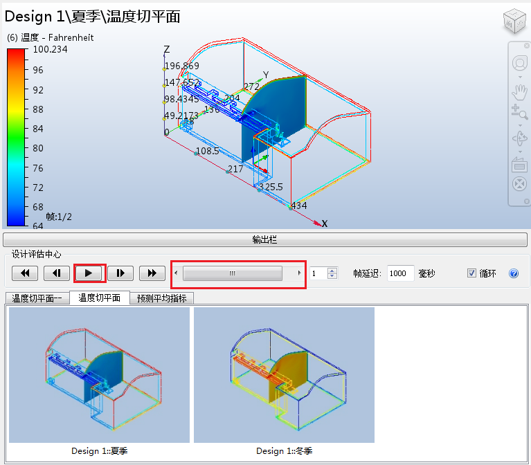 7. 要比较来自两种工况的结果,请单击“播放”按钮或拖动滑块。