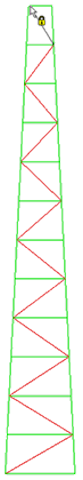 从左下角开始,从左到右交替单击顶点。上移塔以创建对角构件。线将捕捉到最近的端点。也就是说,线将不会捕捉到塔的背面,但会捕捉到面对您的一面。当到达顶部时,模型应如下图所示。