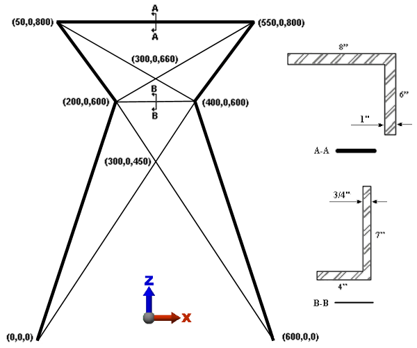 请参见下面的梁塔图以了解角度和梁端点坐标的方向。