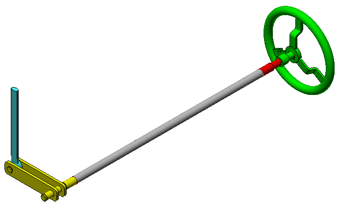 在本教程中,我们将逐步介绍下图中所示的远程曲柄装配件的网格划分。CAD 模型中已忽略了大多数将车轮连接到曲柄的空心轴。我们将使用“质心创建器”工具在车轮和曲柄之间创建梁单元连接。已划分网格的模型将在后续的远程曲柄静态应力分析教程中使用。