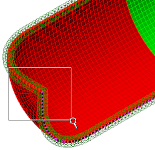 “窗口”。围绕压力容器的底部角绘制一个框以放大此角,如下图所示。