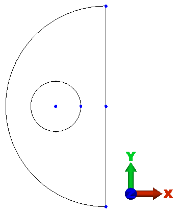 。现在,这两个小圆弧与大圆弧和直线的定向方式相同。这是在这些构造对象之间构建正确的结构化网格所必需的。对于所有四个构造对象,端点位于 Y 轴正方向和 Y 轴负方向。