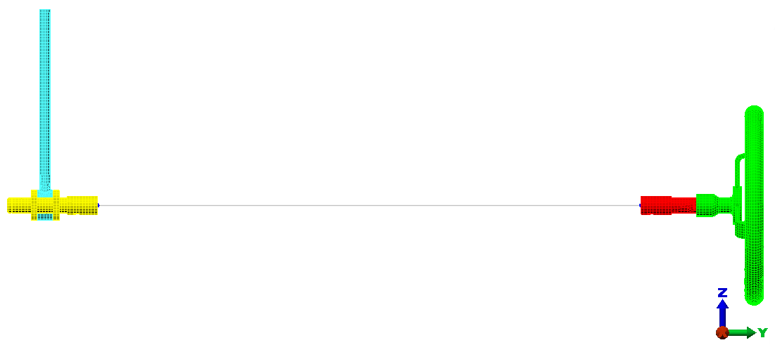 接下来,使用质心创建器在曲柄和车轮短轴的末端定位质心,将末端表面连接到质心,以及使用梁单元连接两个质心。控制盘头轴,以连接终点曲面到质心,并连接两个顶点的柱体单元。