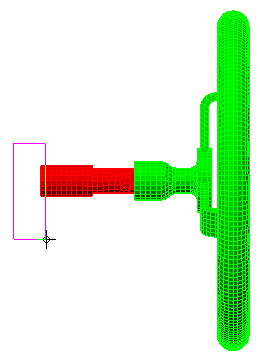 “表面”处于活动状态时,单击并拖动鼠标以绘制一个仅包围手轮子装配件左侧边的选择窗口,如下所示: