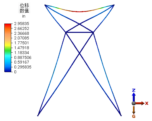 分析将继续,且模型将显示在“结果”环境中。默认情况下,最初会显示位移大小。