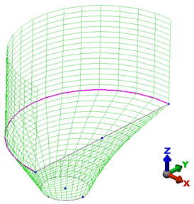 如果我们要围绕 YZ 平面镜像产生的一半结构,则必需是此圆弧方向。我们所构建的结构如下面的一半模型图中所示(刚刚创建的圆弧亮显)。请注意,该结构是围绕 YZ 平面对称的。