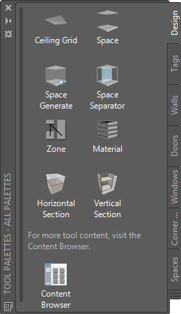 Use this procedure to configure the default Material tool and use it to apply an existing material definition to a component of an AEC object in a drawing. By default, the tool applies the Standard material definition, but you can modify the tool properties to specify any of the materials defined in the Material Definitions (Imperial).dwg or Material Definitions (Metric).dwg files.