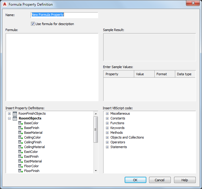 Use this procedure to add a formula property definition to a property set definition. Formula property values can be computed based on the values of other property data. A formula property definition is a type of automatic property, because the value it displays is determined automatically, based on its definition, and cannot be edited directly.