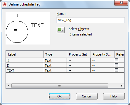 Use this procedure to create a schedule tag that captures and displays property set data for a particular object in your drawing.